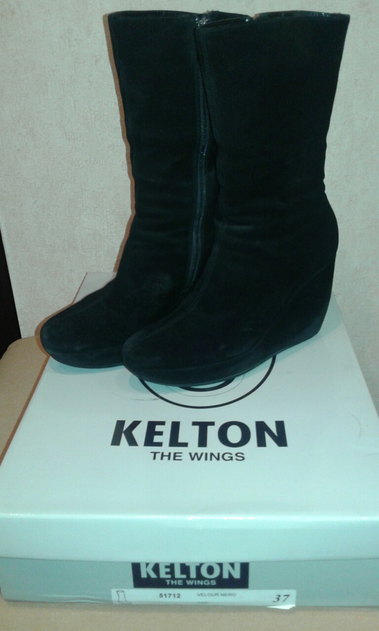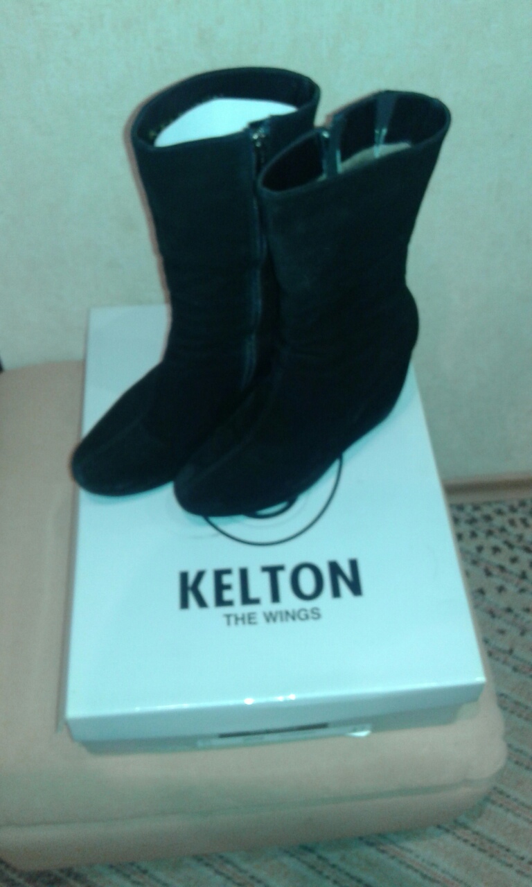 Ботинки высокие зимние на платформе KELTON пр-во Италия замшевые черного цвета в хорошем состоянии, 38 размер. |
