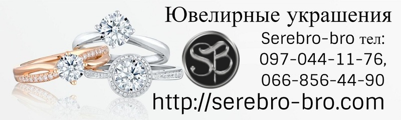 Интернет магазин "Serebro-Bro" предоставляет совершить покупку стильных украшений из серебра из серебра 925 пробы с золотыми вставками для девушек, парней, женщин, мужчин скидкам. У нас вы встретите: кольца, подвески, цепочки, крестики, кулоны, печатки, браслеты, серьги, перстни воплощенные из натуральных материалов с вставками драгоценных камней. Наши серебряные украшения по рекордным реф акциям будут роскошным атрибутом вашего выходного или практичного вкуса. С нами имеете возможность встретить последние тренды коллекций мужских, женских украшений. Грациозные серебряные изделия из нашего магазина принесут страстность всякой даме. Безгранично фасонные ювелирные украшения в свою очередь предадут комфорт повседневно. Товары нашего онлайн магазина вы сможете увидеть во всей Украине в таких городах, как Львов, Черкассы, Мариуполь, Запорожье, Одесса, Киев, Харьков, Ивано-Франковск. Продавец-консультант магазина подскажет совершить правильный предпочтение в покупке интересующих украшений, дадут ответы на все интересующие вопросы, дадут максимальную консультацию о доставке, составлении заказа, каталога товаров, оплате. Мы все время рады устроителям совместных покупок, СП и делаем шикарные скидки. Всегда высокое качество по низкой цене. Тел: 0668564490, 0970441176. http://serebro-bro.com