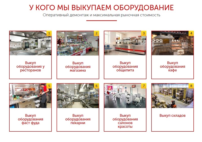 Выкуп оборудования – самый выгодный способ избавиться от ненужного оборудования в короткий срок.. Мы избавим Вас от долгих поисков покупателей, выкупим всю имеющуюся технику, демонтируем и вывезем в сжатые сроки. Мы поможем сохранить Ваше время. Что мы выкупаем: • Оборудование для общепита • Оборудование для магазина • Торговое оборудование • Промышленное оборудование • Весовое оборудование • Мясоперерабатывающее оборудование • Упаковочное оборудование • Оборудование для кафе и ресторанов • Другие виды оборудования По всем вопросам звоните |