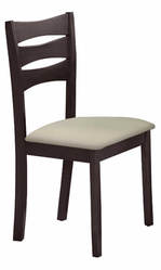 Цвет венге. Натуральное дерево (гевея), размер стула 38 x 43 x 90 см. Обивка кожзам бежевый.