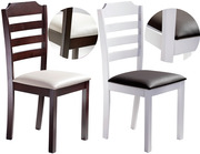 Цвет венге. Натуральное дерево (гевея), размер стула 38 x 42 x 89 см. Обивка кожзам браун лайн.