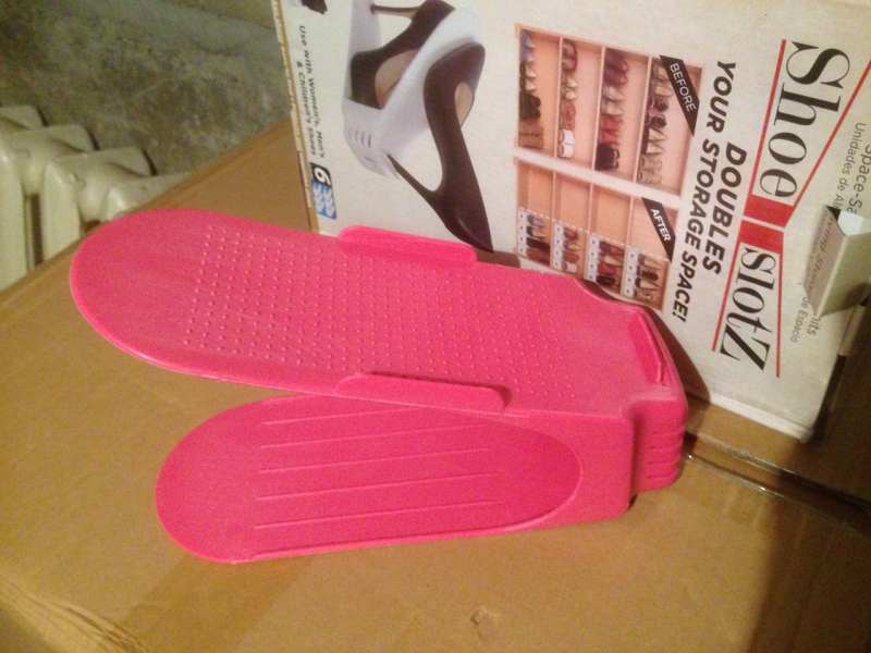 Подставку Shoe Slotz можно разместить на полу, обувных стояках, на полках. Открытая конструкция упорядочивает обувь, демонстрирует ее, позволяя быстро найти нужную пару.