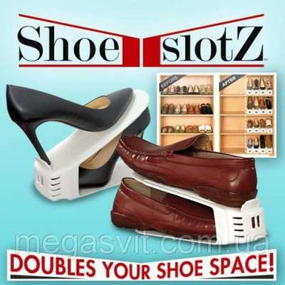 Чтобы сократить место, занимаемое обувью в прихожей, шкафу или гардеробной, отличным решением станет покупка двойной стойки для обуви Shoe Slotz. Она представляет собой набор из 6 двойных подставок одного цвета.