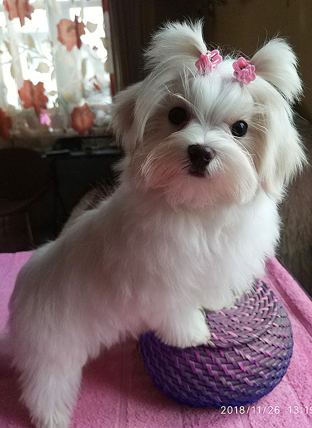 Четырехмесячная девочка - милашка, щенок мальтийской болонки (мальтез - Собаки и щенки