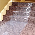 Прозрачная полиэтиленовая пленка со специальной формулой акрилового клея, который удаляется механической чисткой после удаления пленки. Самоклеящаяся защитная пленка применяется для защиты ковровых покрытий на период до 2-х месяцев на время отпуска, при продаже имущества (которое подвергается показу риэлторами), при проведении временных строительных работ, при проведении подготовки выставочных площадей