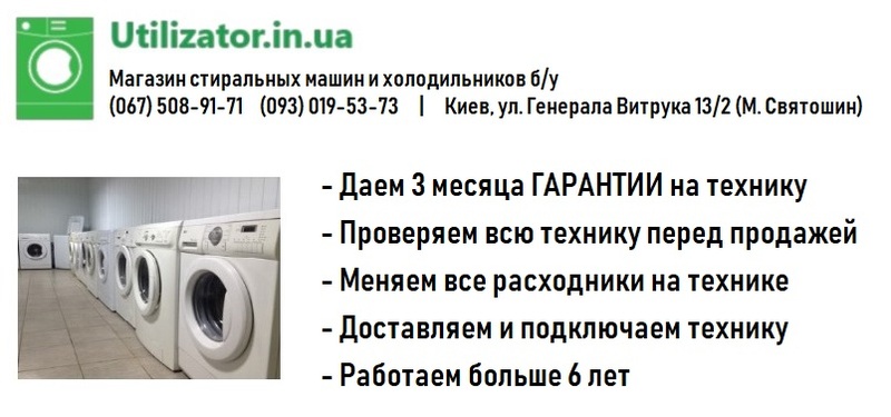 Магазин комиссионной техники продаст стиральные машины б/у с гарантией. В магазине есть постоянно 20-30 единиц стиральных машин по цене от 2500 грн до 4500 грн. - Даем 3 месяца гарантии на технику - Проверяем всю технику перед продажей - Меняем все расходники на технике - Доставляем и подключаем технику по Киеву и в пригороде Находимся на м. Святошин, улица. Генерала Витрука 13/2. Работаем без выходных. http://utilizator.in.ua/ (067)508-91-71 (093)019-53-73 |