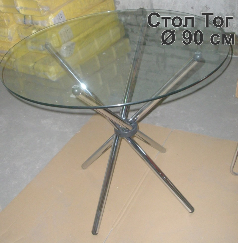 Круглый стеклянный стол Тог, прозрачное стекло толщина 10 мм, ноги нержавеющая сталь. Диаметр 90 см, высота 77 см. |