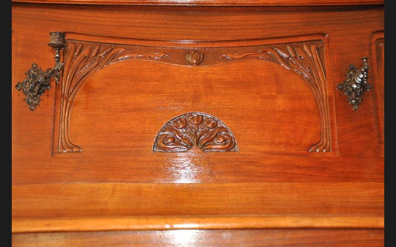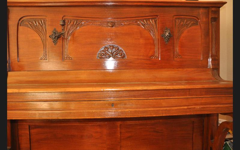 фортепиано после реставрвции.клавиши из слоновой кости,ажурные подсвечники.орентировочно начало века. |