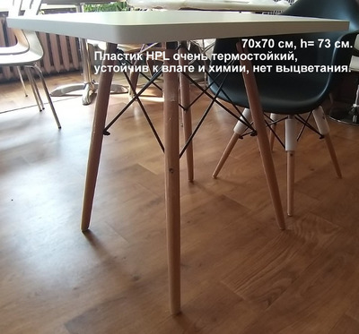 Размеры стола 70 х 70 см столешня толщина 4см, высота стола 73 см. Цвет Белый. Деревянные ножки (натуральное дерево бук). Компактный столик Квадро со столешницей из современного экопластика который с очень высоким качеством поверхности, ударопрочностью и износостойкостью. Пластик HPL очень термостойкий, устойчив к влаге и химии, нет выцветания. Стойкий к маслам, жирам и пищевым продуктам, химическим реагентам. А также не ломается при хранении и транспортировке. |