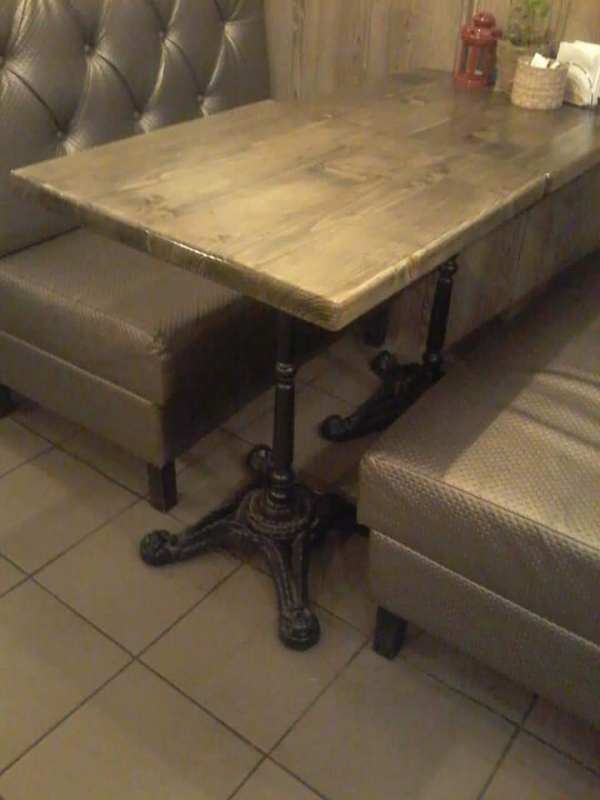 В зв`язку зміною інтер'єру продаю меблі з кав`ярні. Продається 4 стола на кованій ніжці, розмір 59 на 59, висота 80. Диван 150 см. Все у відмінному стані. Стіл - 1200 грн, диван- 3000 грн. Двоніть за тел. 0985396792 |