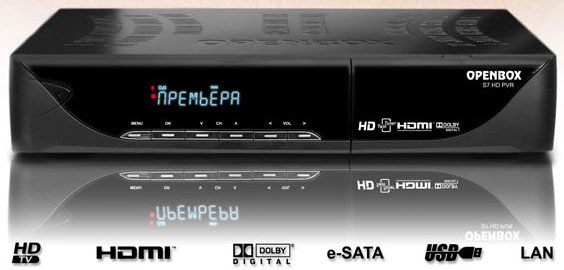 Openbox? S7 HD PVR двух тюнерный HDTV ресивер с функцией записи. Среди аналогичных аппаратов Openbox? S7 HD PVR явно выделяют следующие возможности: мощный процессор STi7101, возможность одновременной записи двух каналов в качестве HDTV, наличие двух CI интерфейсов, очень богатый арсенал возможностей подключения на заденй панели, стабильная работа всех функций PVR, воспроизведение фильмов в формате DivX, просмотр фотографий JPEG в высоком разрешении до 1080i, удобный проигрыватель музыки MP3, режим Тайм-Шифт, расширенный режим "Картинка в картинке", очень удобное пользовательское меню.