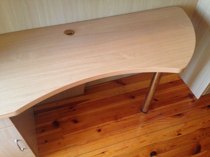 Продам отличный письменный стол. Качество стола отличное, сделан хорошо, все свои функции выполнил и стал уже не нужен. Эксплуатировался в квартире, достаточно бережно. На столешнице и фасаде тумбочки есть по одному маленькому дефектику(невооруженным взглядом даже не заметны). Размеры длинна/ширина/высота: 1м80см/60см/75см |