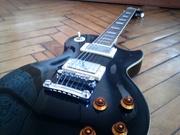 Общие характеристики Гриф - махагони Корпус - махагони Крепление грифа - вклеен • Струнодержатель: Tune-o-matic/Stop-bar • Звукосниматели: 2 хамбакера • Регулировки: 2 х громкость, 2 тона, 3-поз. переключатель • Накладка на гриф: палисандр • Лады: 22 • Мензура: 24,75" • Фурнитура: хром • Страна-производитель: Корея (под управлением фирмы Gibson) • Характеристики грифа: Ширина порожка: 1.68” • Инкрустация: трапеции • цвет: черный • Вес - 5 кг |