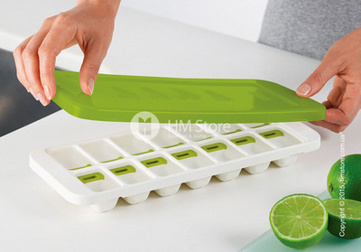 Компактная форма для льда Joseph Joseph QuickSnap Plus, Green предназначена для удобного хранения кубиков льда. Уникальность аксессуара в том, что Вы запросто сможете извлечь необходимое количество кусочков прямо в стакан. Для этого нужно лишь на обратной стороне формы нажать на кнопочку в указанном направлении. Благодаря герметичной крышке кубики льда будут защищены от запахов других продуктов в морозильной камере. Форма QuickSnap Plus рассчитана на 14 кубиков. |