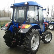 Полноприводный китайский трактор с дизелем жидкостного охлаждения, 50 л.с.Новый дизайн отапливаемой кабины, КПП с реверсом 12+12, блокировка заднего моста, гудроусилитель руля. Передний мост качающийся портального типа. В систему охлаждения залит тосол, свеча накала. Линзы на лампах ближнего света, передние и задние рабочие фары. Трехступенчатый воздухоочиститель с высоким забором воздуха. АКБ 100 А/час с ручкой массы. Компрессор, ресивер, пневмовыход, пневмоусилитель тормозов. Металлическая сетка перед радиатором, два гидронасоса. Генератор мощностью 750 Вт. Глушитель с защитной сеткой. Ящик для инструмента. Топливный бак расположен слева внизу. Разборные диски передних и задних колес, защита ниппелей. Стеклоочиститель лобового стекла. Зеркала заднего вида, внутрикабинное зеркало, подножки, поручни на стойках кабины и дверях, плоский пол рабочей зоны с подвесными педалями. Резиновый коврик. Педали тормоза и сцепления имеют упоры. Ручной тормоз. Раздельные педали тормоза. Сиденье с двумя пружинами и амортизатором, ремень безопасности. Люк, солнцезащитная шторка, вентилятор, плафон салона. Открывающиеся боковые и заднее окна. Система отопления и вентиляции с фильтрами салона. Комбинированная панель приборов, счетчик часов работы, аварийная сигнализация, звуковой сигнал. Ручной газ. Система принудительного опускания навески. Переднее и заднее прицепные устройства. Центральный винт с фиксатором. Розетка для прицепа. Место для крепления номерного знака с подсветкой.