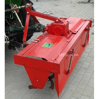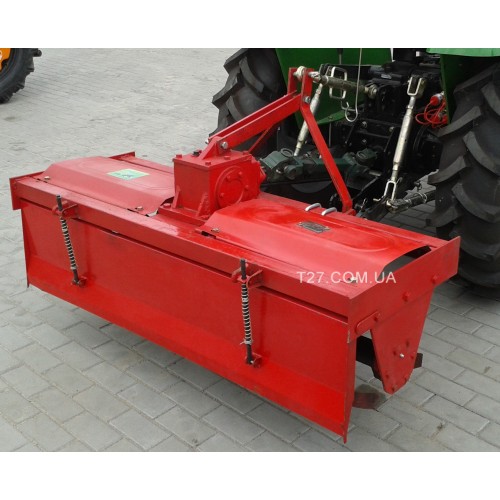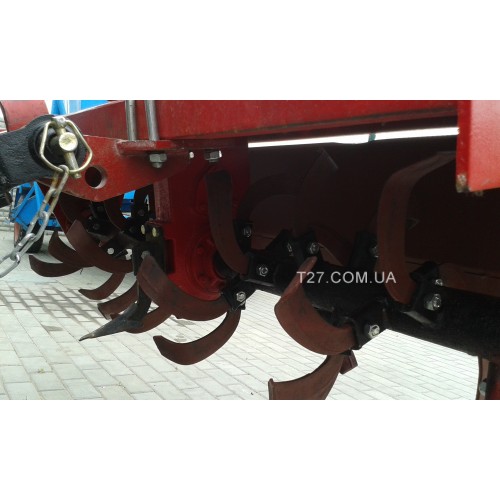 Грунтофреза оснащена карданным валом для подключения к ВОМу трактора, 3-точечной системой навески (на трактор соответствующей мощности), прочной рамой, закрытым редуктором в масляной ванне (служит для снижения оборотов), сменными режущими ножами правого и левого ориентирования, защитным кожухом ножей.