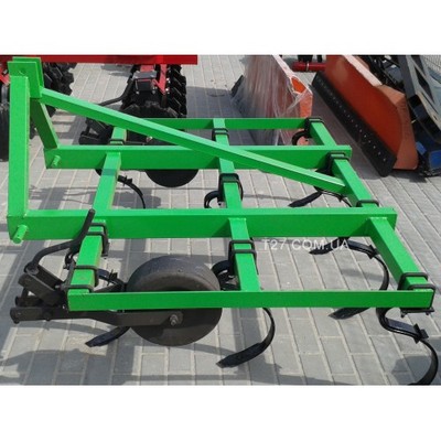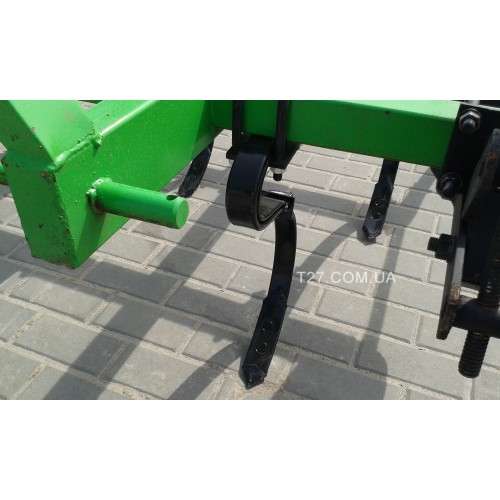 Усиленная конструкция выдерживает большие нагрузки благодаря сплошной раме и продольной металлической балке. Девять пружинных стоек (зубьев) культиватора расположены в три ряда и крепятся к раме при помощи стремянок с возможностью регулировки расстояния между ними.