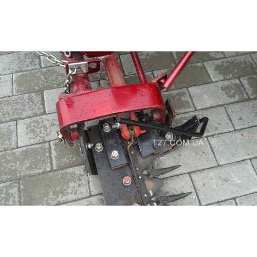 Косилка отличается простой, надежной и удобной конструкцией, имеет два положения (рабочее и транспортное), по своему устройству напоминает ножницы. Режущие элементы из прочной стали «стригут» растительность под самый корень, оставляя оптимальную высоту среза 6-8 см. Установка режущего аппарата на требуемую высоту среза регулируется в зависимости от условий работы, с учетом состава почвы (ее комковатости и каменистости). Укладка травы в сторону производится отводной доской, прикрепленной к скользящему рабочему полотну.