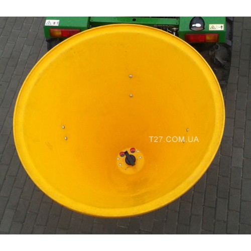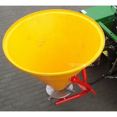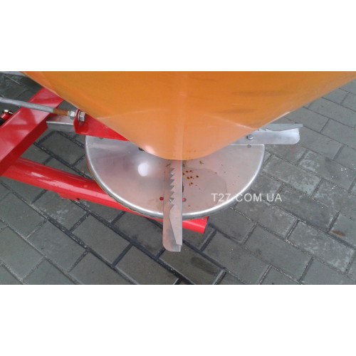 Туковый разбрасыватель минеральных удобрений 500 кг однодисковый (Польша) предназначен для поверхностного внесения гранулированных и кристаллических (порошкообразных) минеральных удобрений с их последующей заделкой почвообрабатывающими орудиями. Используется также для подкормки зерновых и пропашных культур, лугов, пастбищ. От аналогов других производителей агрегат отличают: усовершенствованная система дозирования удобрений, свободный доступ ко всем рабочим элементам, стойкие к агрессивной среде материалы изготовления, простота в настройке, эксплуатации и обслуживании. Конструкция состоит из рамы, бункера (резервуара) конусообразной формы, устройства для подачи, дозирования и разбрасывания удобрений. Наличие отдельных регулировок обеспечивает ряд преимущественных характеристик: для выбора интенсивности подачи удобрений предусмотрен специальный рычаг, управляющий заслонками у основания бункера; оптимальная форма емкости (резервуара) гарантирует равномерное поступление удобрений к разбрасывающему диску; лопатки на разбрасывающем диске устанавливаются вручную под определенным углом, за счет чего регулируется ширина обработки (от 6 до 14 м). Разбрасыватель способен не только быстро и эффективно обрабатывать большие территории, но и соблюдать экономию в расходовании удобрений при обработке небольших площадей.