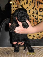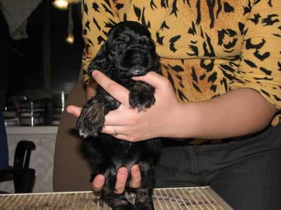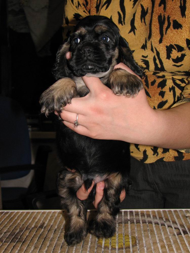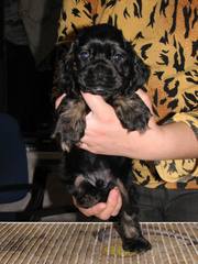 Продаются щенки американского кокер спаниеля (девочки и мальчики); дата рождения 15.02.2011г.; окрас черно-подпалый; с родословной. Родители: мать - Уника Айрин Ален'с Шоу (чёрно-подпалая), Чемпион Беларуси, Чемпион Породы; отец - Absolyut Grand Diamond (триколор), 2хСАС, 1хR.CAC, находится в Украине, питомник "Grand Diamond". Фото щенков вышлем на e-mail. Щенки находятся в Беларуси, г. Новополоцк. Возможна доставка в Россию и Украину по договоренности. |
