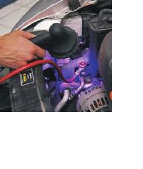 Диагностика системы проводится с помощью аппарата для заправки кондиционеров фреоном. Проверка проводится на герметичность всей системы и на наличие утечек. В данном случае вместо фреона используется флуоресцентный краситель, который при ультрафиолетовом освещении помогает легко обнаружить место утечки.