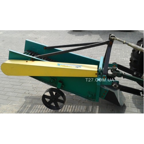 С помощью транспортных колес производится регулировка глубины обработки и контроль равномерности заглубления, что обеспечивает повышенную маневренность агрегата. Инновационной доработкой является ленточный транспортер (длиной 115 см), состоящий из металлических прутьев, и наличие устройства для встряхивания с эллиптической звездочкой, позволяющего производить первоначальную очистку клубней картофеля от налипшей почвы и грязи. Конструктивная особенность модели гарантирует также устойчивость орудия и предотвращает смещение транспортной ленты со стороны в сторону во время работы.