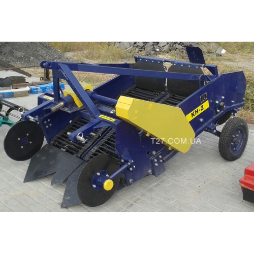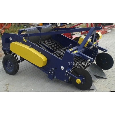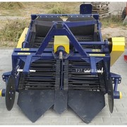 Картофелекопалка двухрядная транспортерная используется для сбора корнеплодов одновременно с двух рядов. Агрегат извлекает корнеплоды из земли, производит очистку от налипшей почвы и складирует урожай на поле для дальнейшего ручного сбора. Высокая эффективность выкапывания достигается за счет применения 3-х кованых ножей-лемехов. С помощью транспортных колес производится регулировка глубины обработки и контроль равномерности заглубления, что обеспечивает повышенную маневренность агрегата.