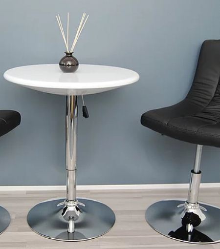 Продается 2шт Амира по 1700гр. Диаметр стола Амира 60 см, высота 70/90 см. Белый, черный, красный, серебро. |