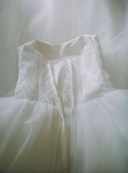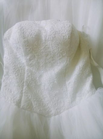 Пишна весільна сукня. Ніжний та зручний корсет оздоблений мереживом, спідниця-пачка із 6-ти слоїв якісного фатину. Зшита V-образно,що значно робить фігуру стрункою та граційною. Розмір s-m за рахунок регулюючого корсета,зріст -170-175см. |