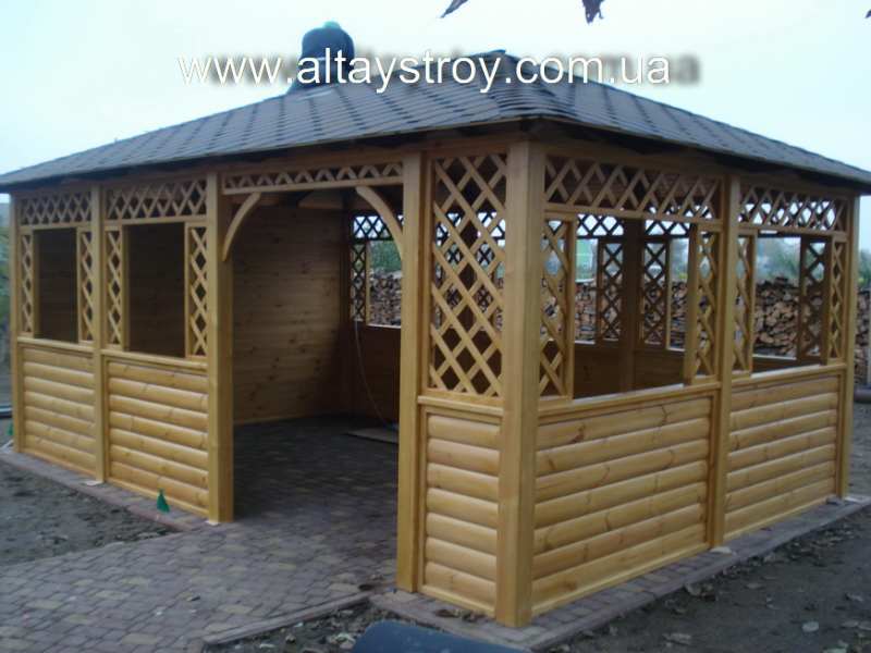Мы изготавливаем деревянные конструкции, беседки самых различных форм (прямоугольных, квадратных, шестигранных, восьмигранных) из дуба, лиственницы, сосны.