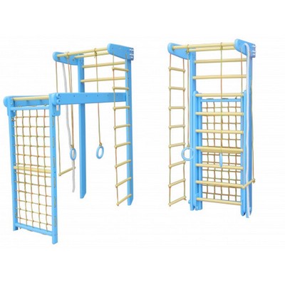 Процесс сборки и разборки предельно простой и занимает не более 2 минут. Этот спортивный уголок является оптимальным решением для детской комнаты, небольших спортивных залов, комнат для ЛФК. Комплекс очень компактный и занимает место - как одна шведская стенка, а по функциональности - как полноценный спортивный комплекс со шведской стенкой, рукоходом, гладиаторской сеткой, навесным веревочным оборудованием.