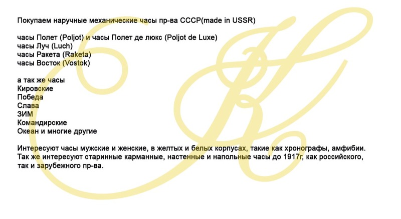 Интересуют советские механические часы. |