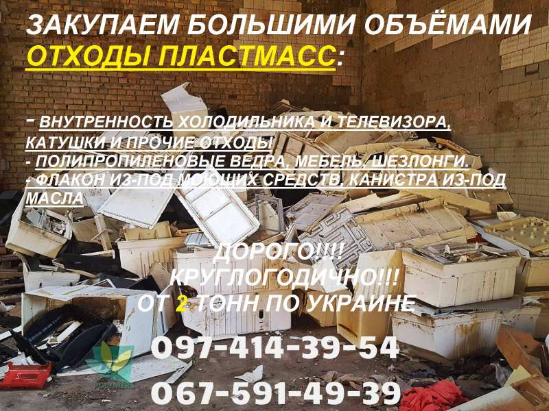 Покупаем отходы полистирола. Дробленый полистирол (ПС-УПМ), цвет белый, серый, черный, цветной. Также купим отходы пластмасс полистирола УПМ (крышка телевизора, внутренности холодильника, катушки, корзины для бумаг, лотки, пробки, ванночки и т.д.). Покупаем дробленный полипропилен ПП (ППР-ящик не предлагать). Цвет не важен. Также покупаем лом пластмасс, полипропилен - шезлонги, ведра, столы, стулья, мебель, брак производства, формы из-под тротуарной плитки и прочие отходы. Работаем как за наличный расчет, так и по безналичному. Тел.: (067) 591-49-39, (097) 414-39-54. Анастасия. Дополнительная информация на сайте polymers.com.ua |