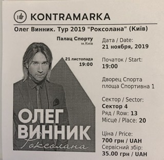 Продам, предлагаю - частное лицо: Билеты на концерты, Украина, Киев и областьКод: 787148 Создано: 20-11-2019 09:23