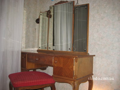 состояние на 4+ покупалась за 19000 рублей в 1980 году на заказ из Югославии. комплект из шкафа (5 полок, 2 выдвижные ниши,большое отделение для вешалок), 2х кроватей (удобнейшие матрасы, перетянутые), трельяжа (с 3-мя зеркалами, выдвижными ящичком и 2-мя отсеками), пуфика (мягкая, удобная подушка), тумбочки. Товар в хорошем состоянии. Эта необычная вещь обязательно подчеркнет индивидуальность и изысканность интерьера Вашего загородного дома или квартиры. Торг уместен при обоснованной аргументации фото кровати пока нет. доставим в любую точку Киева |