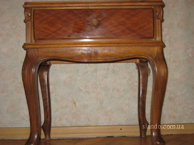 состояние на 4+ покупалась за 19000 рублей в 1980 году на заказ из Югославии. комплект из шкафа (5 полок, 2 выдвижные ниши,большое отделение для вешалок), 2х кроватей (удобнейшие матрасы, перетянутые), трельяжа (с 3-мя зеркалами, выдвижными ящичком и 2-мя отсеками), пуфика (мягкая, удобная подушка), тумбочки. Товар в хорошем состоянии. Эта необычная вещь обязательно подчеркнет индивидуальность и изысканность интерьера Вашего загородного дома или квартиры. Торг уместен при обоснованной аргументации фото кровати пока нет. доставим в любую точку Киева |