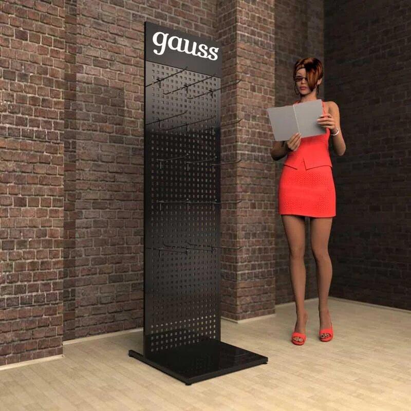 На торговую стойку перфорированную можно заказать съемную корзину для продукции. Реклама - топер с наклейкой, можно забрендировать стойку по бокам.