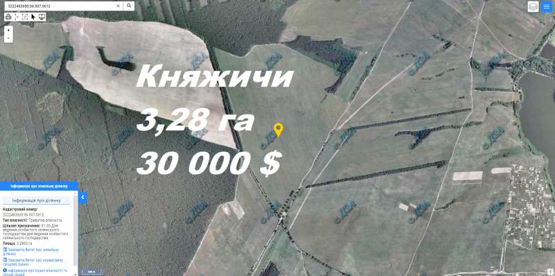 Продажа участка земли в с. Княжичи Киево-Святошинский р-н, до м Теремки 32 км. Площадь участка 3,28 га. Назначение ОСГ. Цена 30000 $. СПП. Самая низкая цена в Княжичях и радиусе +30 км. Продается отличный земельный участок сельхоз назначения, вторичка, не пай. Земля расположена в хорошем месте рядом с лесом и рядом с фасадом будущей большой окружной дороги вокруг Киева. В данный момент засевается кукурузой. Подписан эксклюзивный договор на продажу. Показы по договоренности. Тел.: (063) 212-69-00, (050) 014-59-35. Сергей. |