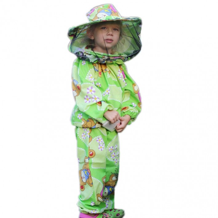 Костюм ДЕТСКИЙ Ткань бязь цветная.Это удобная и практичная одежда, предназначеная для работы на пасеке.Маска пристегивается до куртки замком. При пошиве текстильных изделий для пчеловодов используется бязь светлых цветов для лучшего отражения солнечных лучей. Внизу куртки и на рукавах вставлена резинка-так пчелы не смогут заползти под одежду. По бокам накладные карманы. 5-8 лет |