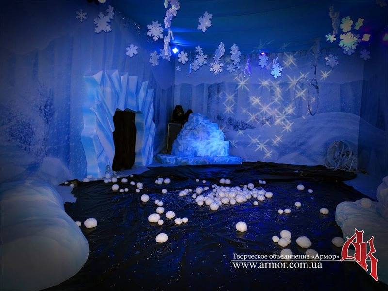 - новогодние декорации и украшения, снежинки из пенопласта;