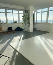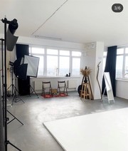 Помещение: 130м2 (зона ожидания, туалет, гримерная, 3 зала для съёмок, ресепшн, барная стойка (кофемашина и чайник в наличии).