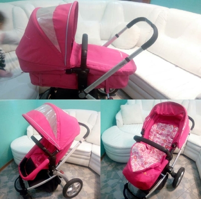 Продам детскую коляску Mothercare MyChoice 4. Шикарная легкая, очень удобная и практичная коляска, идеальна для весенне-летних деток. Колесная база 60 см(для меня было важно, так как лифт только маленький, проходит без проблем)задние колеса надувные, и с амортизацией, едет очень легко и ребенка не трясет, передние поворотные(можно и фиксировать)очень маневренные, легко управлять ею.Большая и практичная люлька, она же и переделывается в сидячий вариант, легко и за две минуты как в летний так и обратно в люльку, что очень удобно, когда малыш уснул. Очень важно, можно устанавливать как лицом к маме, так и лицом к миру, это занимает две минуты и оооочень удобно(многие малыши капризничают из-за этого и не хотят сидеть в коляске). Очень проста в складывании и транспортировке, легкая, с люлькой весит 10 кг. Очень красивый, яркий розовый цвет. Есть все чехлы, дождевик, москитка, накладки на ремни. Весь текстиль и пластик в отличном состоянии, без нюансов. Коляска легко без усилий складывается и раскладывается, ни один механизм не заедает, работает как часики. На колесную базу без переходников и адаптеров легко устанавливается автокресло макси коси, кубекс. Поломок нет и не было. Очень удобная и полностью закрытая корзина для покупок
