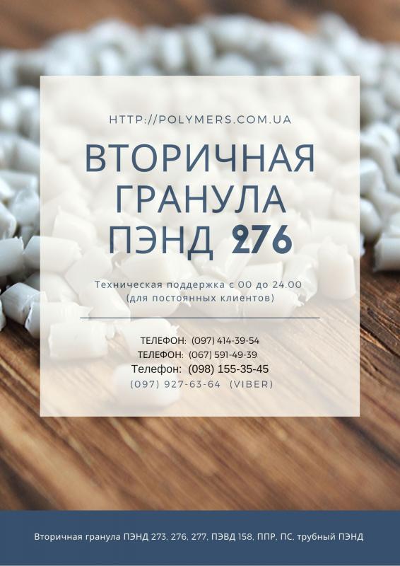 - ГРАНУЛА ПЭНД белая (зам. 276,выдув, экструзия). Получают из технологического отхода, брака выдувных емкостей. Проходит очистку от инородных материалов, мойку, агломерацию, грануляцию. Фильтрация-две сетки П-72. Текучесть составляет (ПТР) 0,35 г/10мин. Гранула светлая, белая. Производство труб, пакетов, выдувной тары
