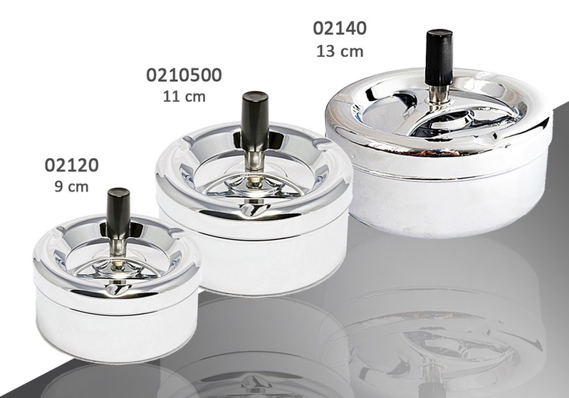 Пепельницы бездымные или как их еще называют типа "Юла" устроены таким образом, что при нажатии на верхнюю пластиковую часть, пепел и окурки от сигарет опускаются в нижнюю емкость. Пепельницы такого типа пригодны и часто используются как рекламный гаджет. Возможно нанесение рекламы или логотипа Вашей фирмы, ресторана, бара, организации, табачной фабрики, производителя сигарет и т.д. способом печати или гравировки. Металлическая пепельница - необходимый элемент для открытых поверхностей, террас и т. д., при ветреной погоде пепел и окурки не разлетаются по сторонам.
