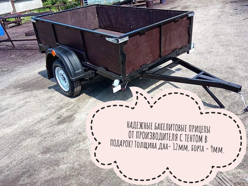 В наличии прицепы разных размеров и комплектации, одноосные и двухосные, бакелитовые прицепы.