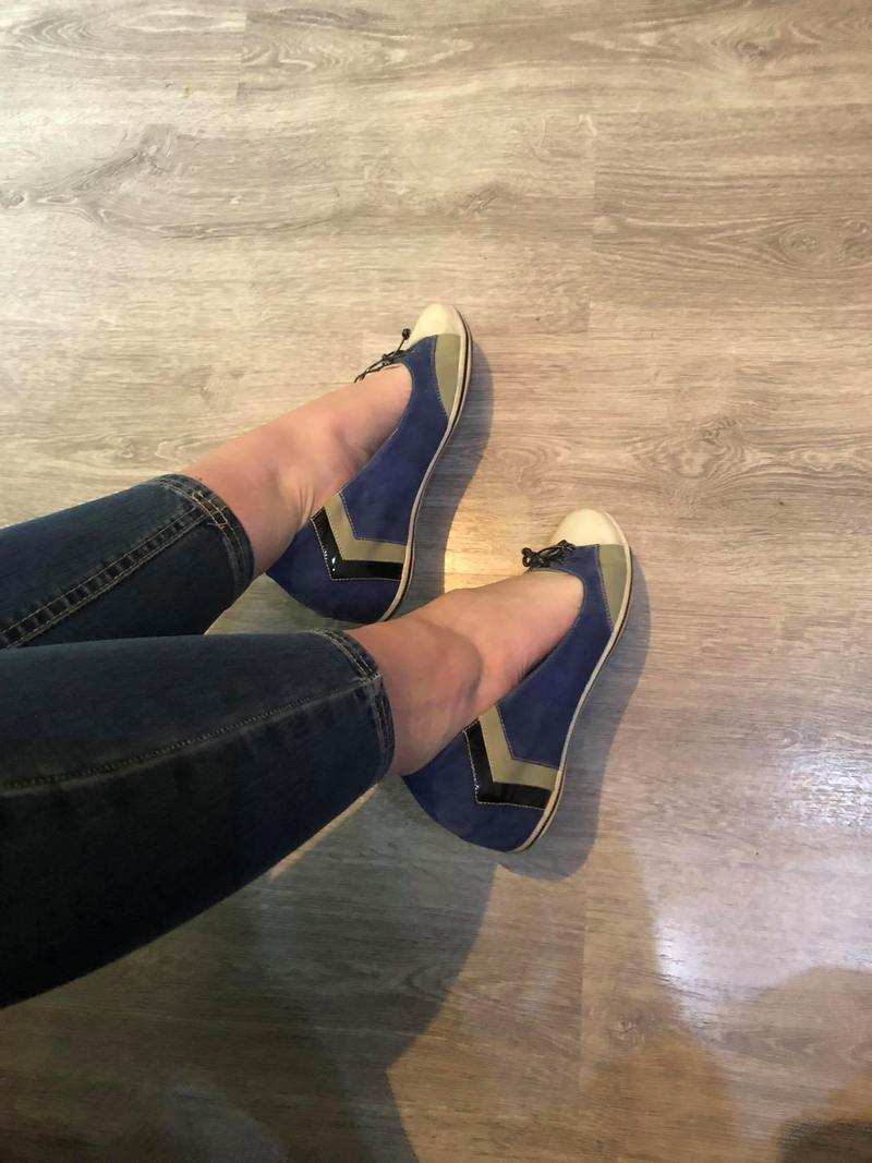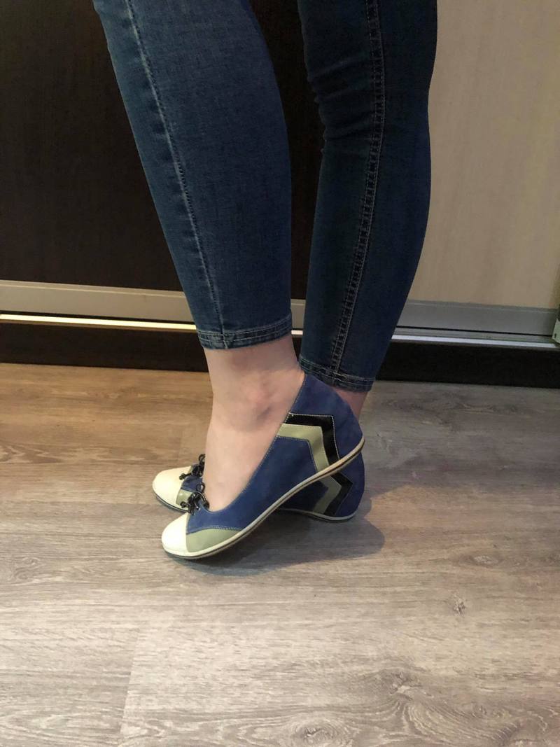 Туфли-балетки фирмы Welfare. Состояние хорошее. На 4-ку точно. Длина стельки примерно 26 cм . Мне маловаты . С почтой дружу. Довольно удобные. |
