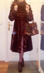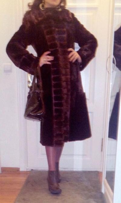 Очень теплая и красивая шуба из полированного шоколадного ливанского мутона, по бокам вставки - лампасы из натуральной кожи цвета бордо. Надета несколько раз, отличное состояние, размер M-L (44). На вопросы отвечу по телефону, сообщения с сайта просматриваю не регулярно. Цена 3200 грн. |
