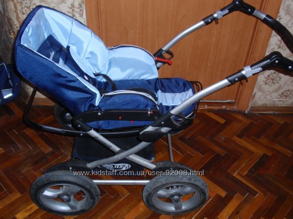 Отличная универсальная коляска от рождения до трех лет. Благодаря пневматическим (надувным) колесам и пружинной независимой системе амортизации коляска имеет очень плавный ход даже на неровной дороге. Ребенка в ней очень легко укачивать. Большая просторная люлька с регулируемым козырьком и теплым чехлом. Колеса надувные на подшипниках при необходимости быстро снимаются. Большие мягкие ручки на люльке для переноски.