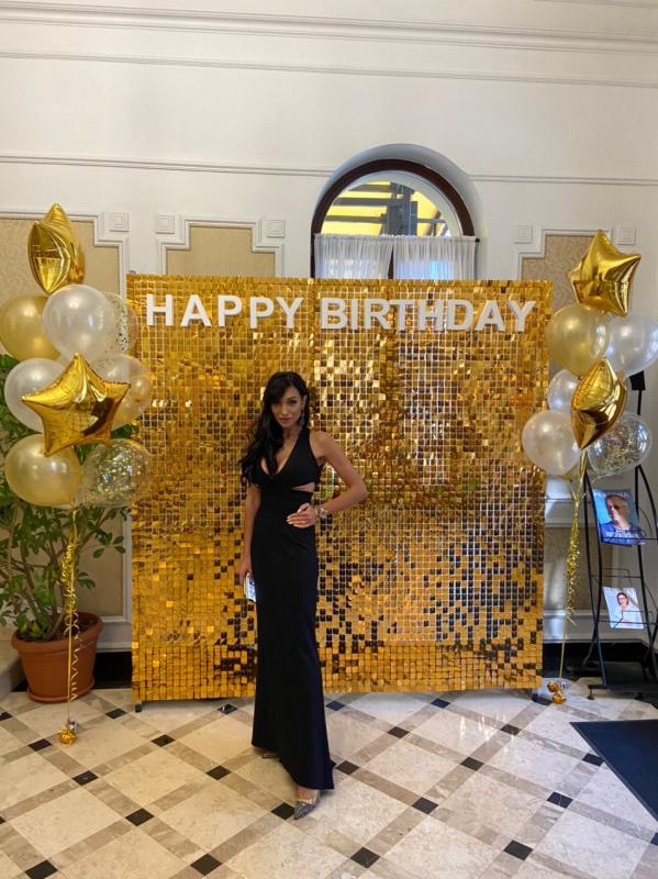 Фотозона с пайетками - прекрасное решение для декорирования вашего праздника или мероприятия. Эксклюзивная фотостена добавит любому событию шика, роскоши и блеска, будь то день рождения, свадьба, корпоратив или торжественное открытие какого-либо заведения. Переливающиеся блики, загадочная игра теней и света, оригинальные акценты - фон из пайеток сделает Ваши снимки по-настоящему яркими и запоминающимися. У нас Вы сможете взять в аренду фотозону с пайетками для украшения своего события.