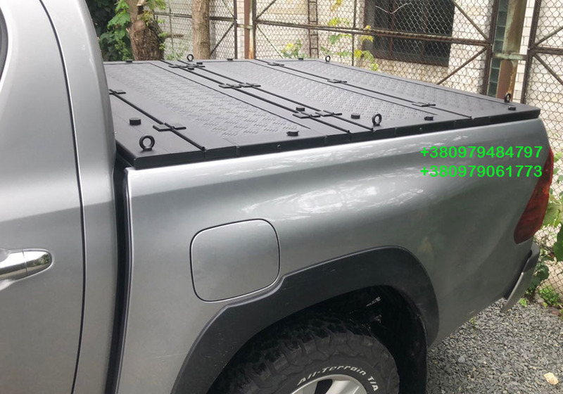 Силовая алюминиевая крышка кузова для пикапа от производителя. Крышка кузова изготавливается для любой модели пикапа в нескольких модификациях (односекционная от 17000 грн., двухсекционная от 23000 грн., трехсекционная от 24000 грн., четырёхсекционная от 28000 грн.) из качественных и надёжных материалов в индивидуальной комплектации для каждого изделия по выбору заказчика и для практичности использования крышки багажника пикапа. Складывающиеся крышки для пикапа блокируются на любом из положений открытия и в таком виде возможно передвижение для транспортировки негабаритных грузов. Срок изготовления крышки пикапа два дня. Также производятся крышки пикапов для установки на них дуг, можно заказать комплектом. Возможна обработка грузовой части кузова пикапа защитным слоем жидкого полимера. Качество, гарантия, сервис, доставка по Украине и в страны мира. Тел. +380979484797, +380979061773